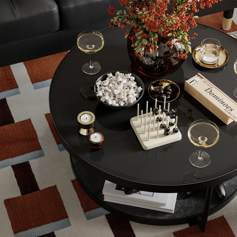 咖啡桌, 碳黑色 大理石紋/黑色 玻璃, 88 公分