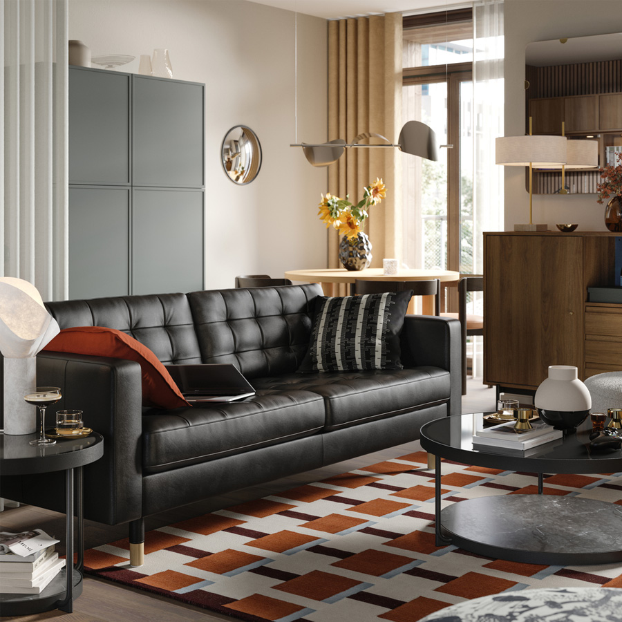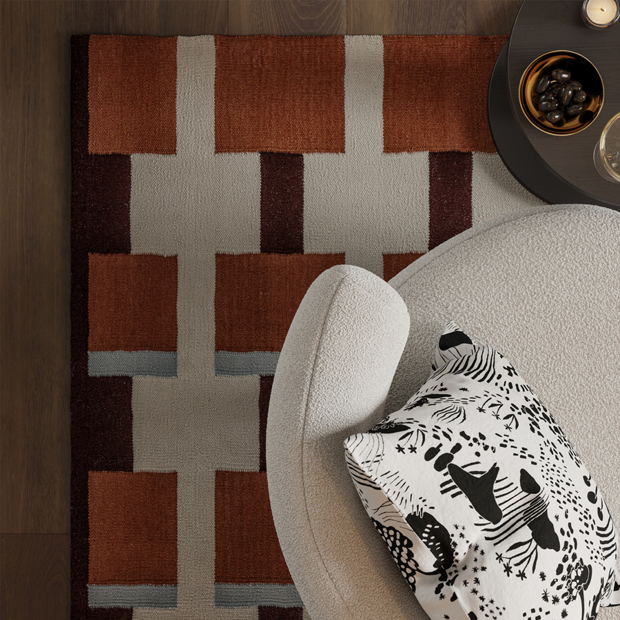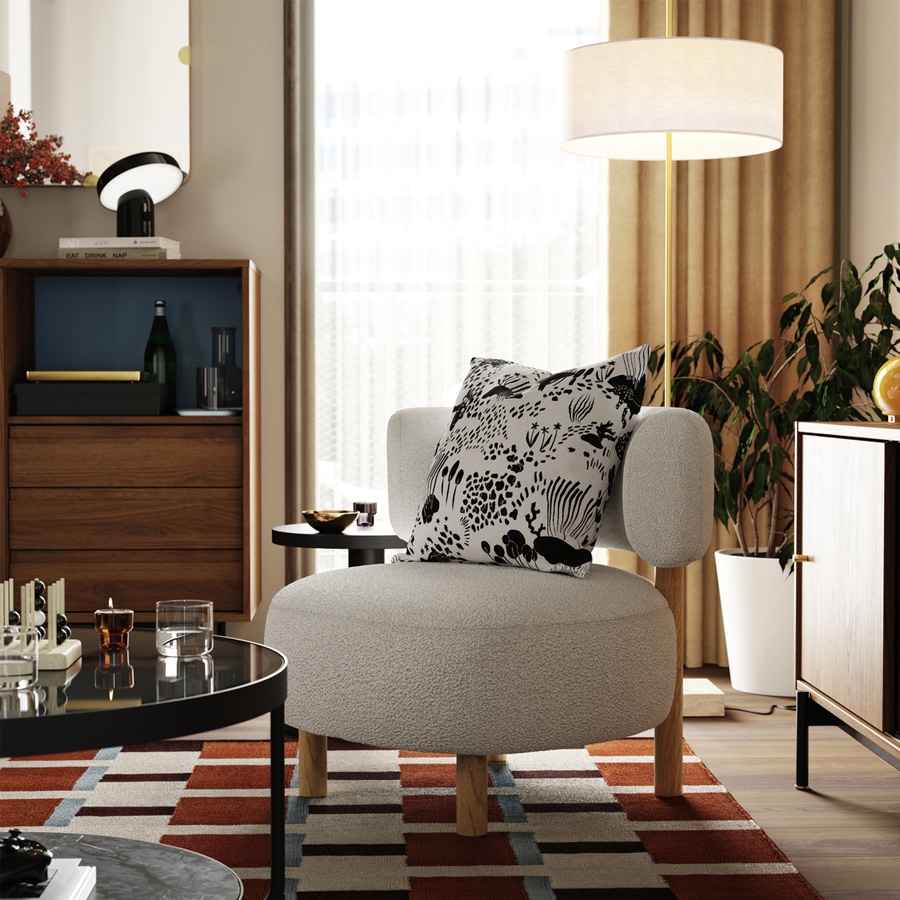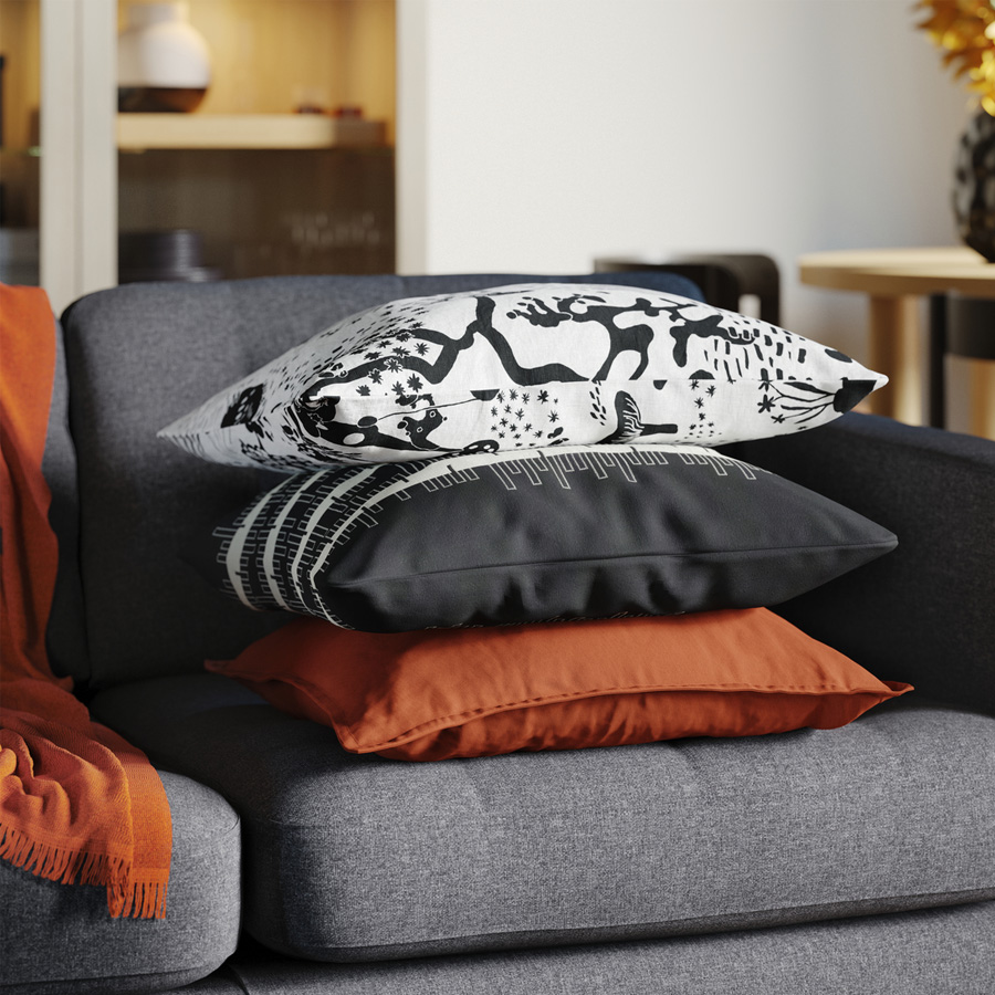 想讓家更溫馨舒適、充滿個人風格,其實很簡單,你只需要加入柔軟的家飾,如地毯、抱枕和毯子。這裡使用手工編織的羊毛幾何地毯,以及以自然靈感黑白圖案設計的亞麻抱枕套,營造出現代的居家氛圍。兩者皆來自 STOCKHOLM 2025 系列,展現北歐美學的設計魅力。