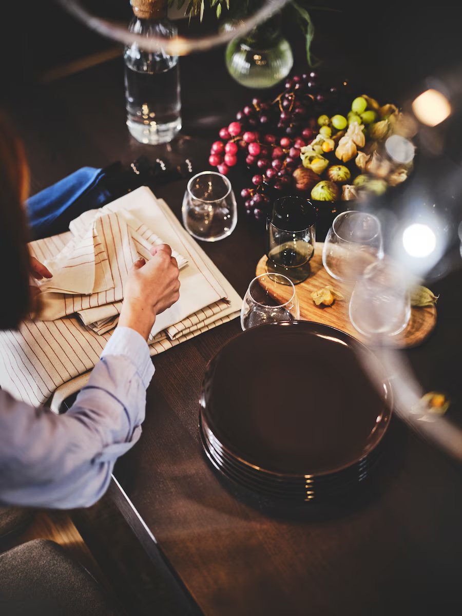 溫暖的燭光特別適合作為餐桌的中央擺設,玻璃蠟燭台和條紋的玻璃瓶能將光線灑在餐廳各個角落,製造愜意的氣氛,使慶典晚宴更加閃耀。