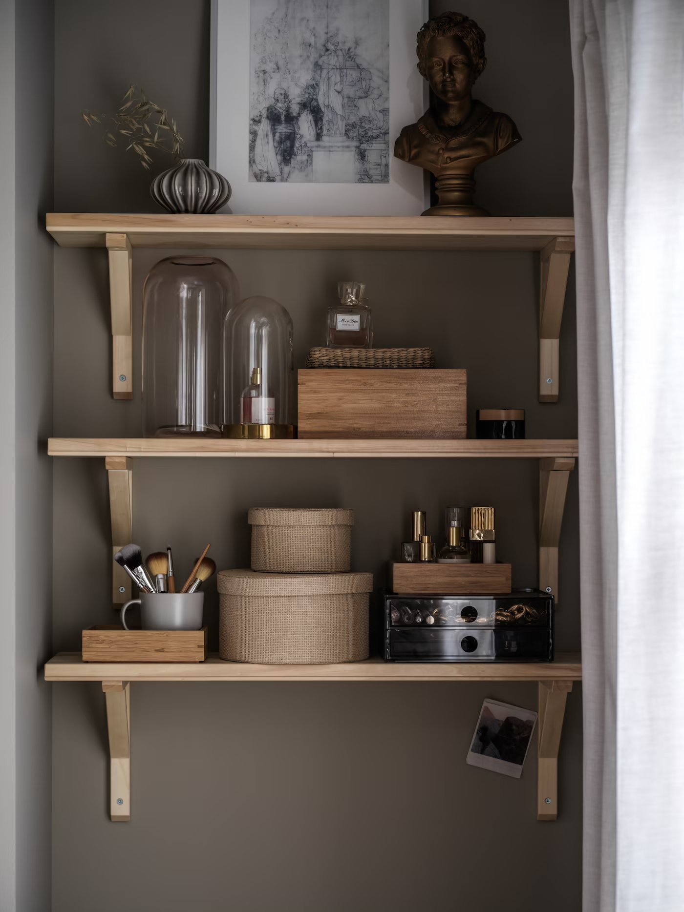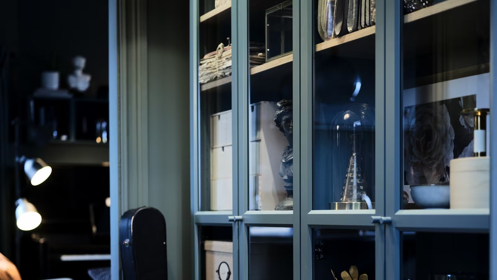 選擇開放式收納櫃時,Joseph建議花點心思挑選展示的物品。可以按照顏色、材質、裝飾風格或圖案等類別來整理和擺放。收好物件的同時,也創造賞心悅目的空間陳列,和客人分享每一個物件背後的小故事。