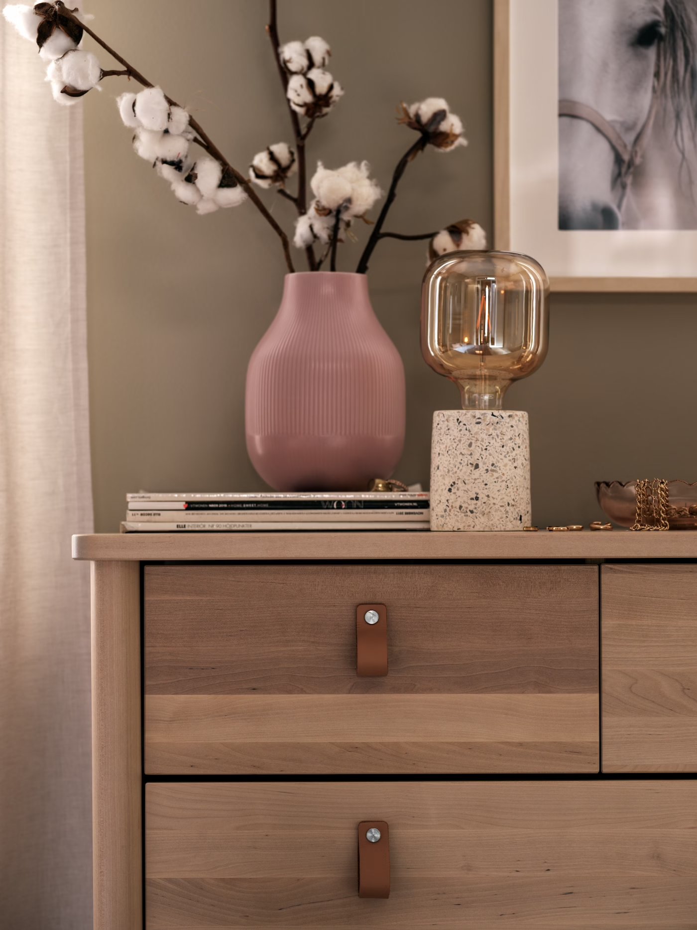 當家裡的顏色一致時,空間看起來更整齊,也能營造出寬敞的視覺感。Joseph挑選了與牆壁顏色相搭配的家具,而較小的收納箱和配件也選擇同一色調,整個空間立刻變得和諧簡潔。