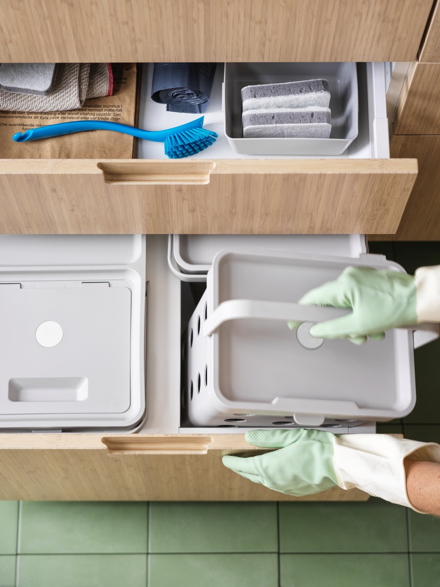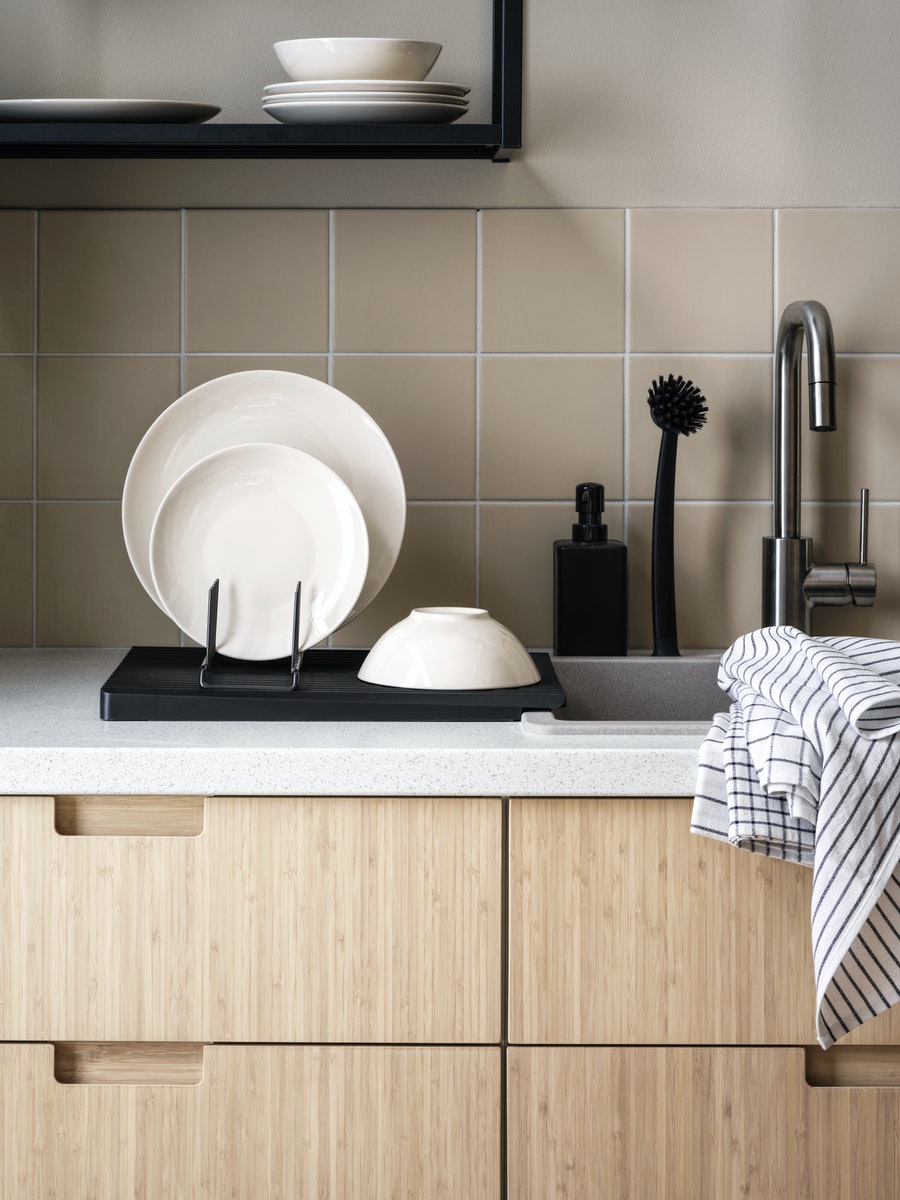 在不大的居家空間中,用手洗碗往往比使用洗碗機更方便。RINNIG系列不但有抹布、刷子和置盤架,也能為廚房增添時尚氣息,令人不禁愛上洗碗時讓腦袋放空的美好時刻。