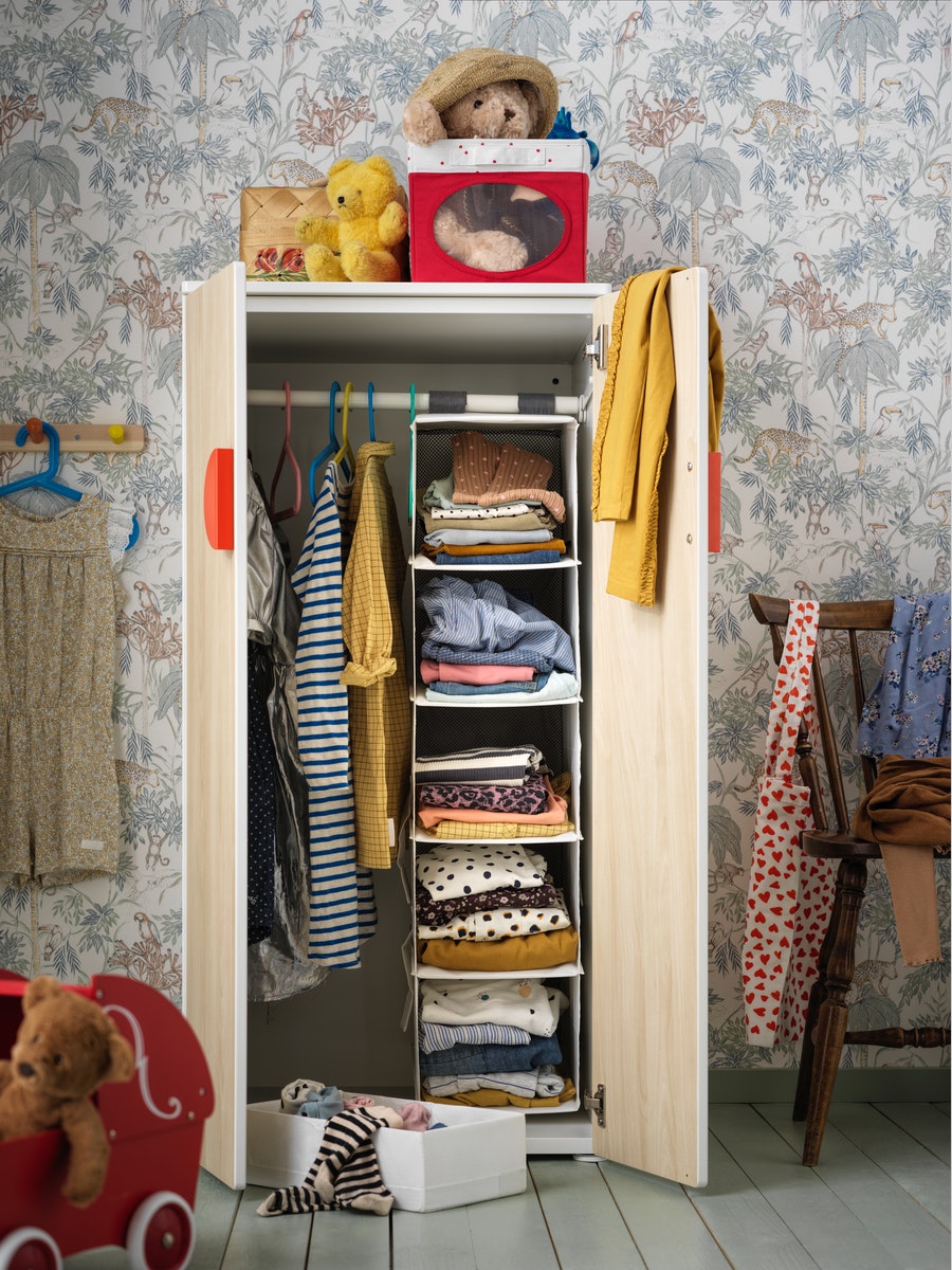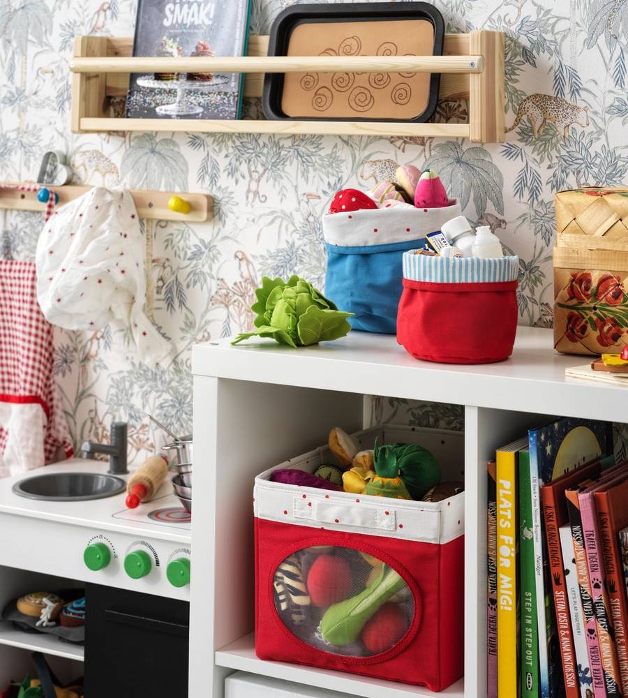 利用開放式層架、畫框壁架和布製收納盒將物品展示出來,往往是整理兒童房的好方法。許多玩具也可兼作裝飾擺設,放在顯眼的位置也能輕鬆尋找。