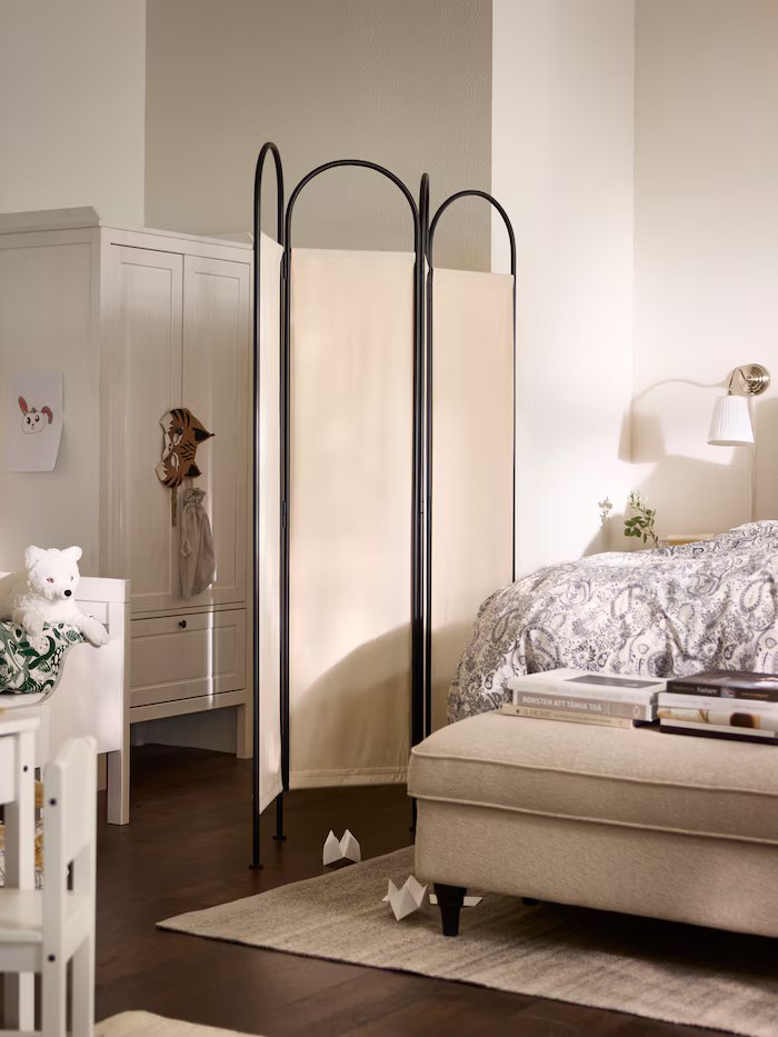 睡覺時想多些隱私?擺放 GRÅFJÄLLET 隔間屏風,讓人睡得更安穩。當起床後開始新的一天,只需幾秒鐘就能折疊收好。布套易於拆卸、維護,也能視需求更換!