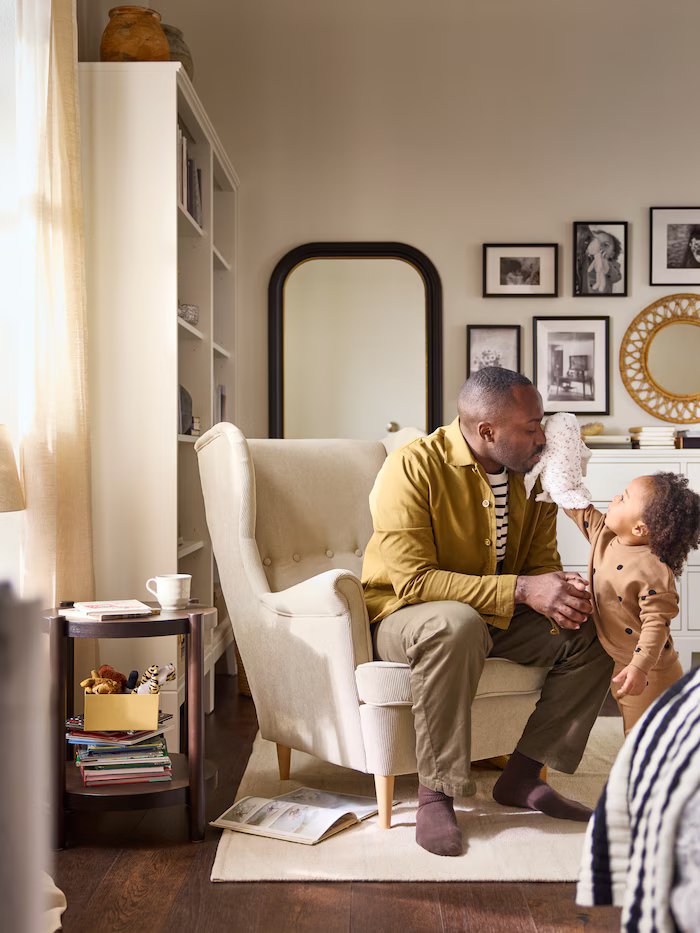 永遠不要低估書櫃和一張好扶手椅的神奇力量。在書櫃裡放滿喜愛的書籍,坐在舒適的 STRANDMON 扶手椅上,總能讓人拋開喧囂煩惱;盡情沈浸在一本好書或好故事中,甚至忘了 3C 產品和遊戲!書櫃和扶手椅的組合,就像是充滿放鬆感的生活儀式,為你帶來一夜好眠。