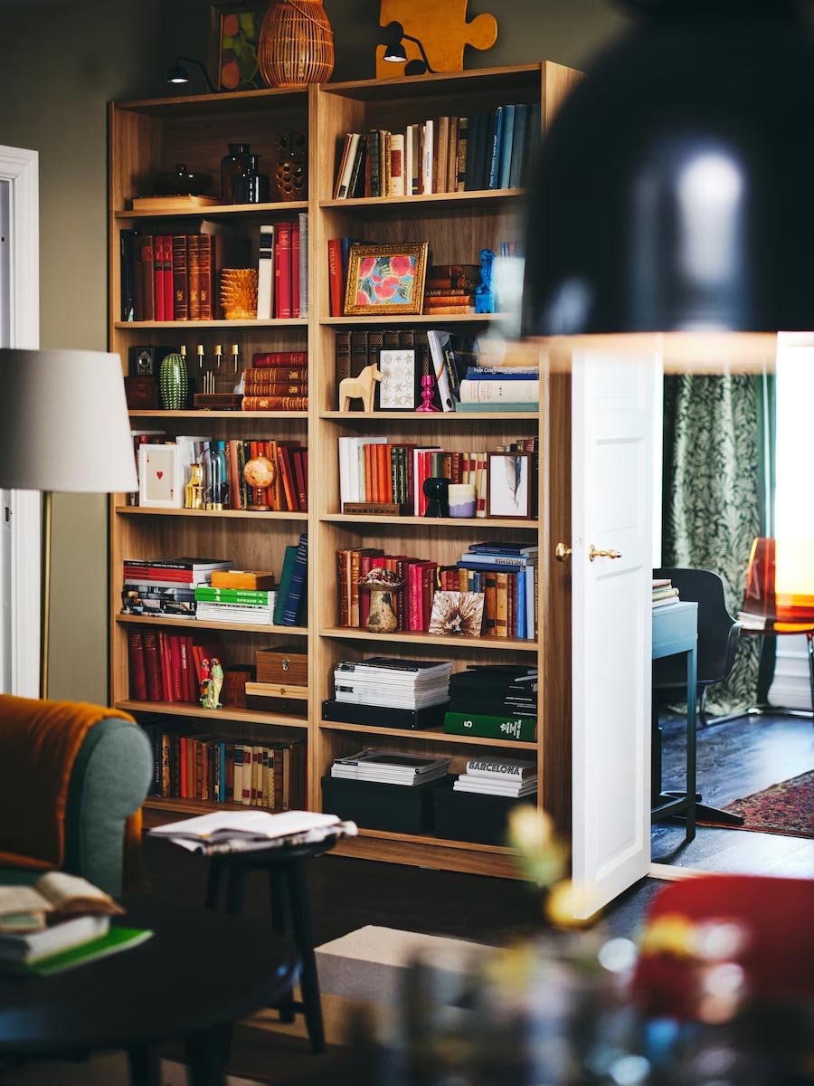 屋主是天生的收藏家,也熱愛整齊有序的生活。客廳裡有許多他喜愛的物件,例如落地書櫃展示著令人印象深刻的藏書,帶框版畫和藝術創作整齊排列在牆上。把精緻作品收進玻璃展示櫃;展現個人品味的同時,也呵護心愛的畫作。