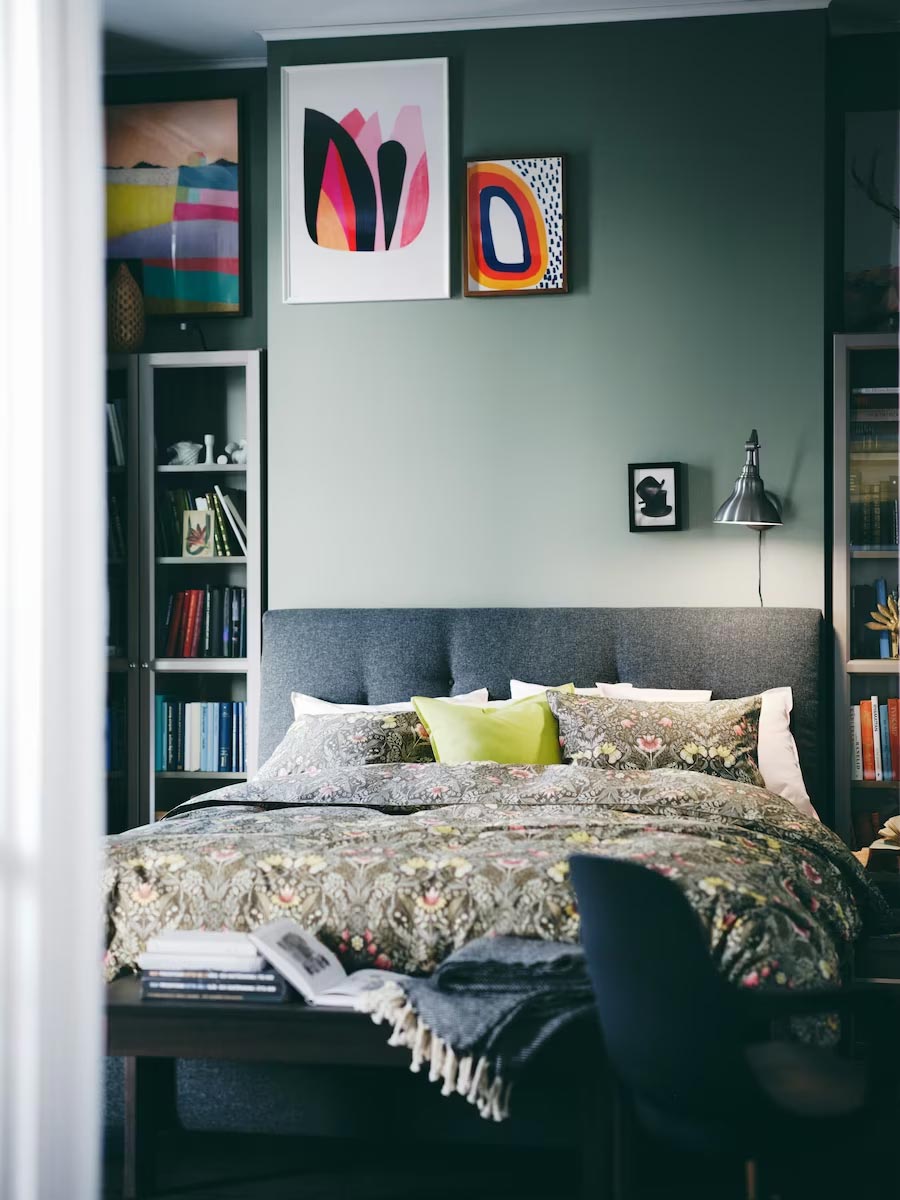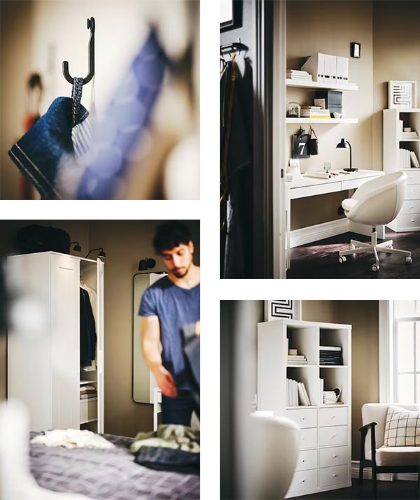想要用小預算打造功能齊全的舒適臥室?在第二間臥室裡,選擇能夠收納大量物品、同時也符合學生預算的實用家具。一旁的工作桌是學習區,搭配兼顧開放和封閉式的收納規劃,整齊收好書籍和衣服;把比較不常用的物品整齊收在床下,讓空間感覺更清爽寬敞。