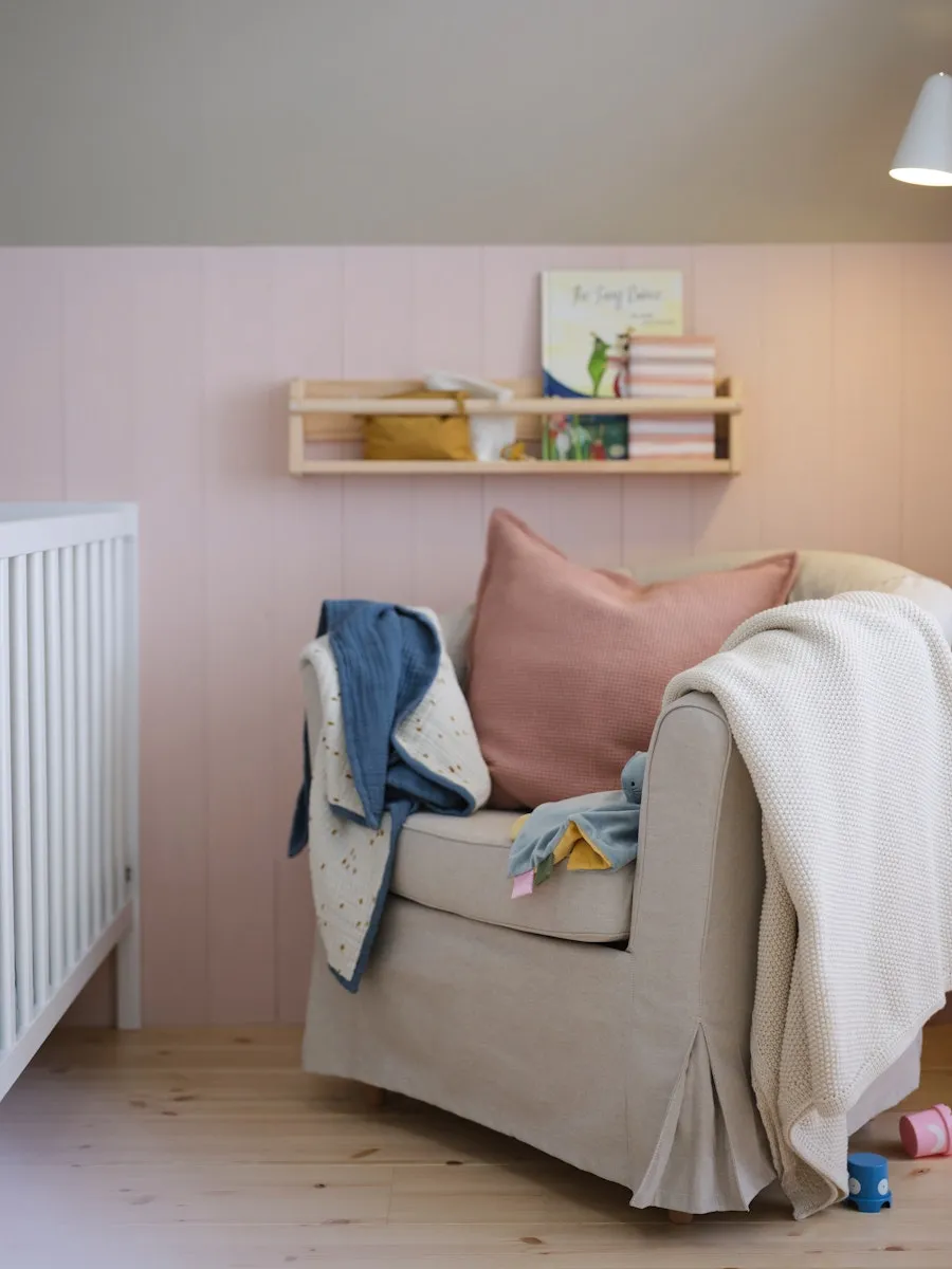 以 SUNDVIK 系列家具作為空間主軸,將所有家具有條不紊地擺放在一起。選擇能彈性變化的嬰兒床、尿布更換桌和衣櫃,陪伴寶寶一起成長,也成為親子時光最溫柔珍貴的背景。