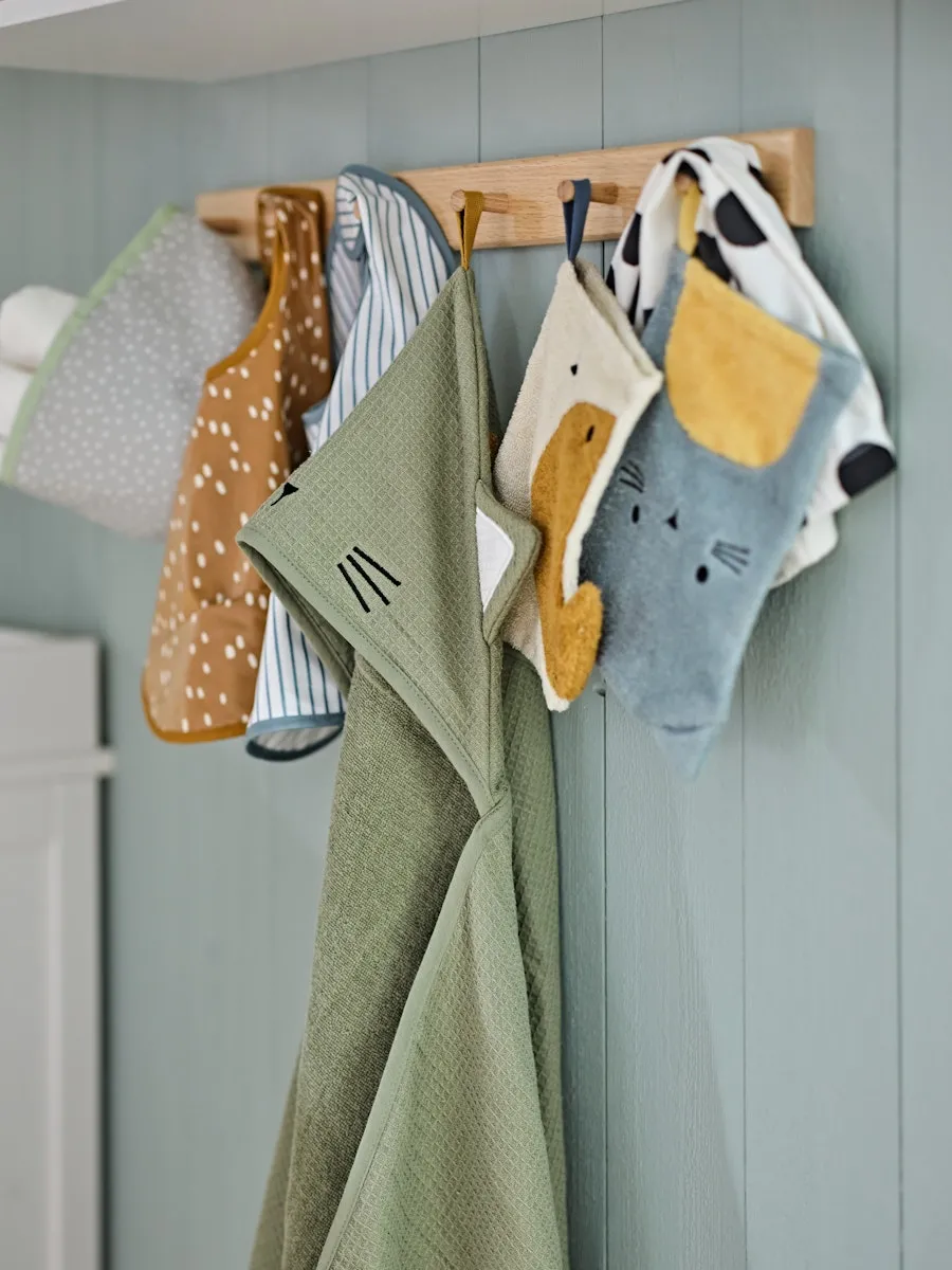 「我設計 GULDVÄVARE 系列的初衷,是為了替孩子們創造像天然棉般柔軟的世界;裡頭有可愛的動物、花朵、條紋和總是耐看的刺繡。這是個受大自然啟發的世界,葉子在風中搖曳、雨滴落下,草地上滿是鮮花。小時候我就喜歡棉紗,它略帶皺褶,卻非常柔軟;為了營造觸感對比,我使用了各種編織材料,像是棉紗和毛巾布。」