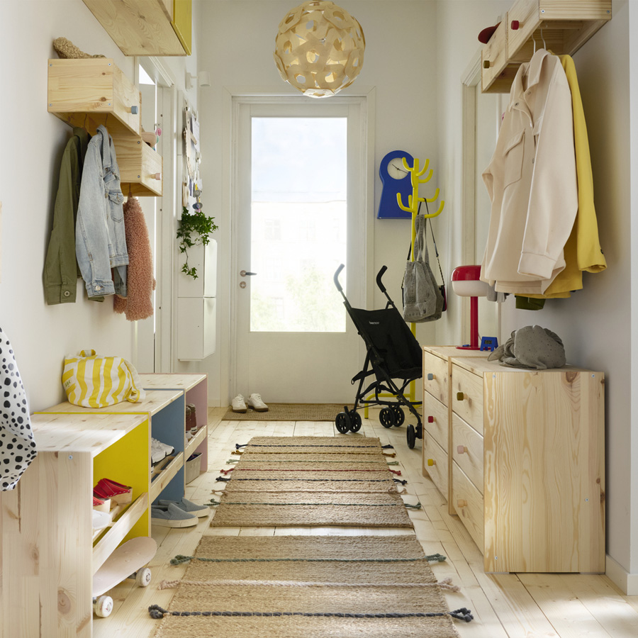 如果掛勾和衣架太高,小孩怎麼自己掛外套?確保每位家人都有專屬空間收納鞋子、外套與配件吧。RAGGBERG 收納鞋凳,以及帶層架的衣帽架,提供全家人一站式玄關收納方案。採用實心松木製作,自然耐用,又能用油漆輕鬆客製,展現個人風格!