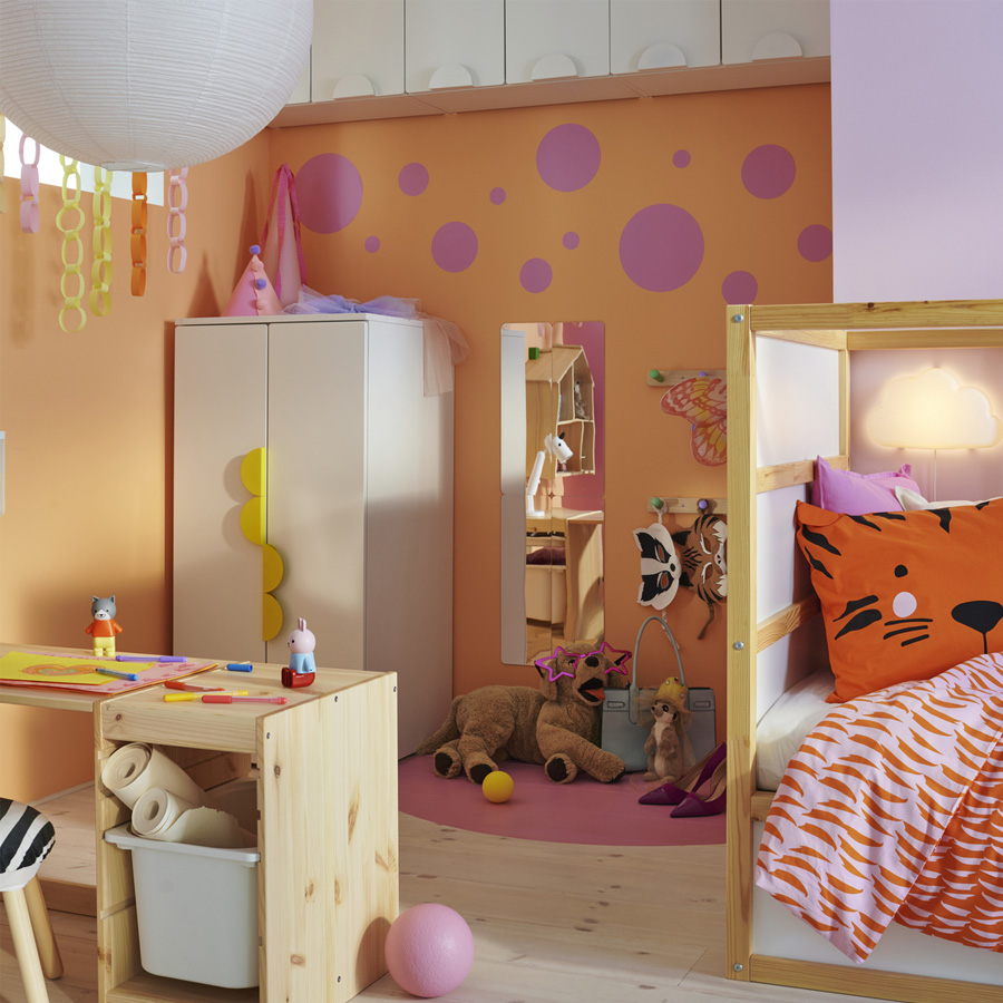 巧妙運用收納,把孩童房分成兩個區域;想要一起玩、或是沈浸在自己的小世界,都沒問題!TROFAST 讓共用兒童房充滿無限可能。