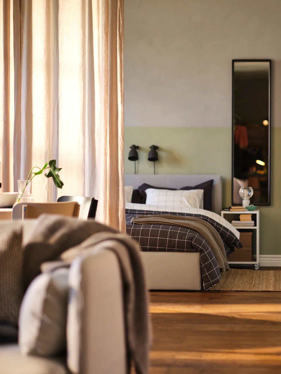 結束一天的工作及親子遊戲時間,只要拉上布簾,開放式空間就成為爸媽的專屬小綠洲,可以全然放鬆、自在閱讀,然後酣睡入眠。