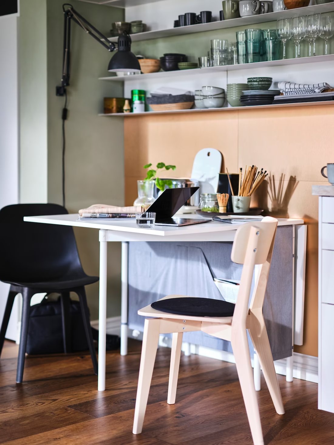 很多家庭會在吃飯時聊天交流,但這家人更喜歡動起來。折疊早餐桌很適合簡單迅速的一餐,使用後也能輕鬆收起。