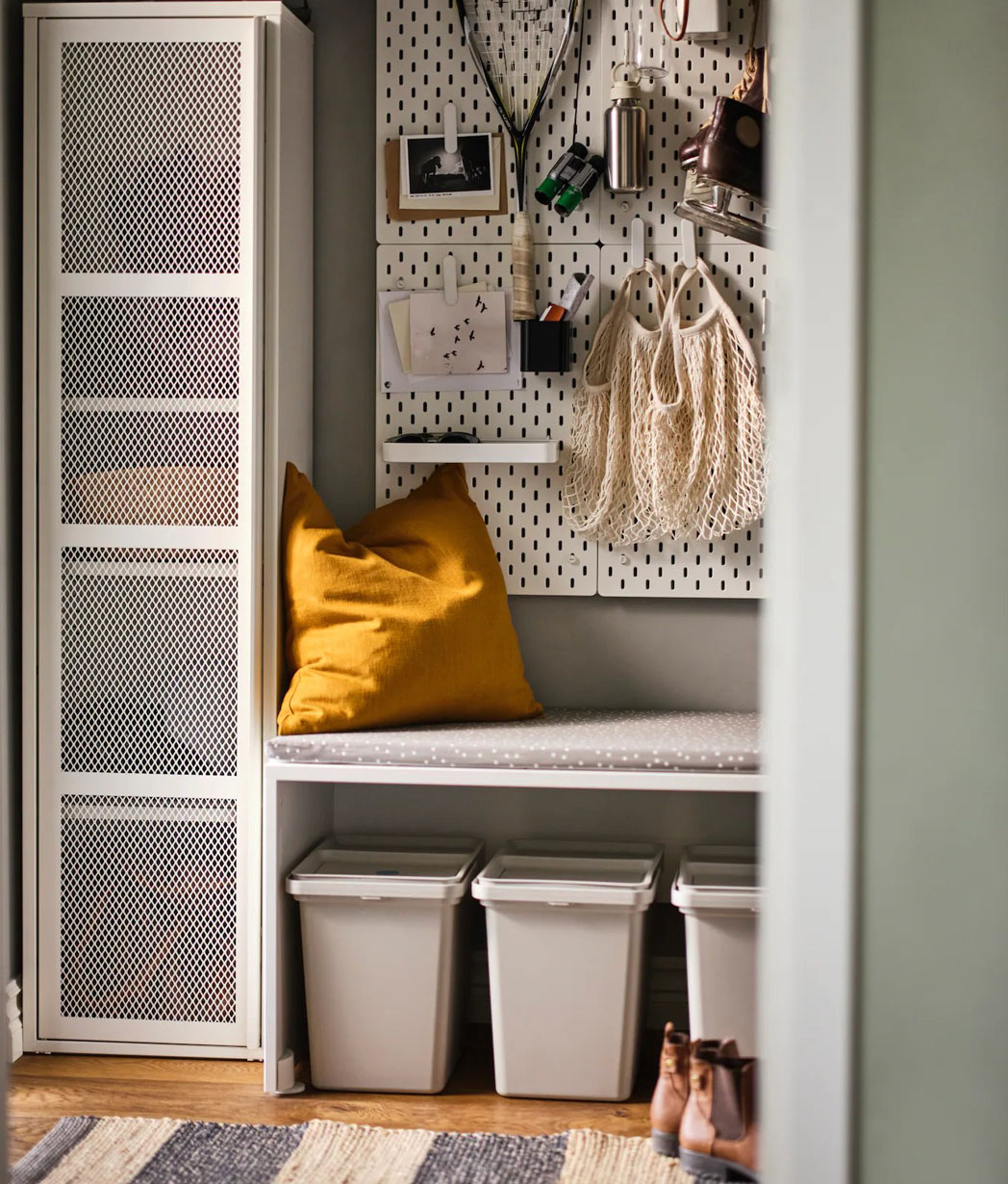 對活力旺盛的戶外咖來說,出門前的準備當然越簡單越好。在玄關巧妙分區,明確規劃出舒適居家和戶外裝備區;秘訣在於設置能完整收納衣物和運動裝備的區塊,還有圍繞整個空間的超高層架,妥善利用玄關牆面。現在就出門玩極限飛盤吧!