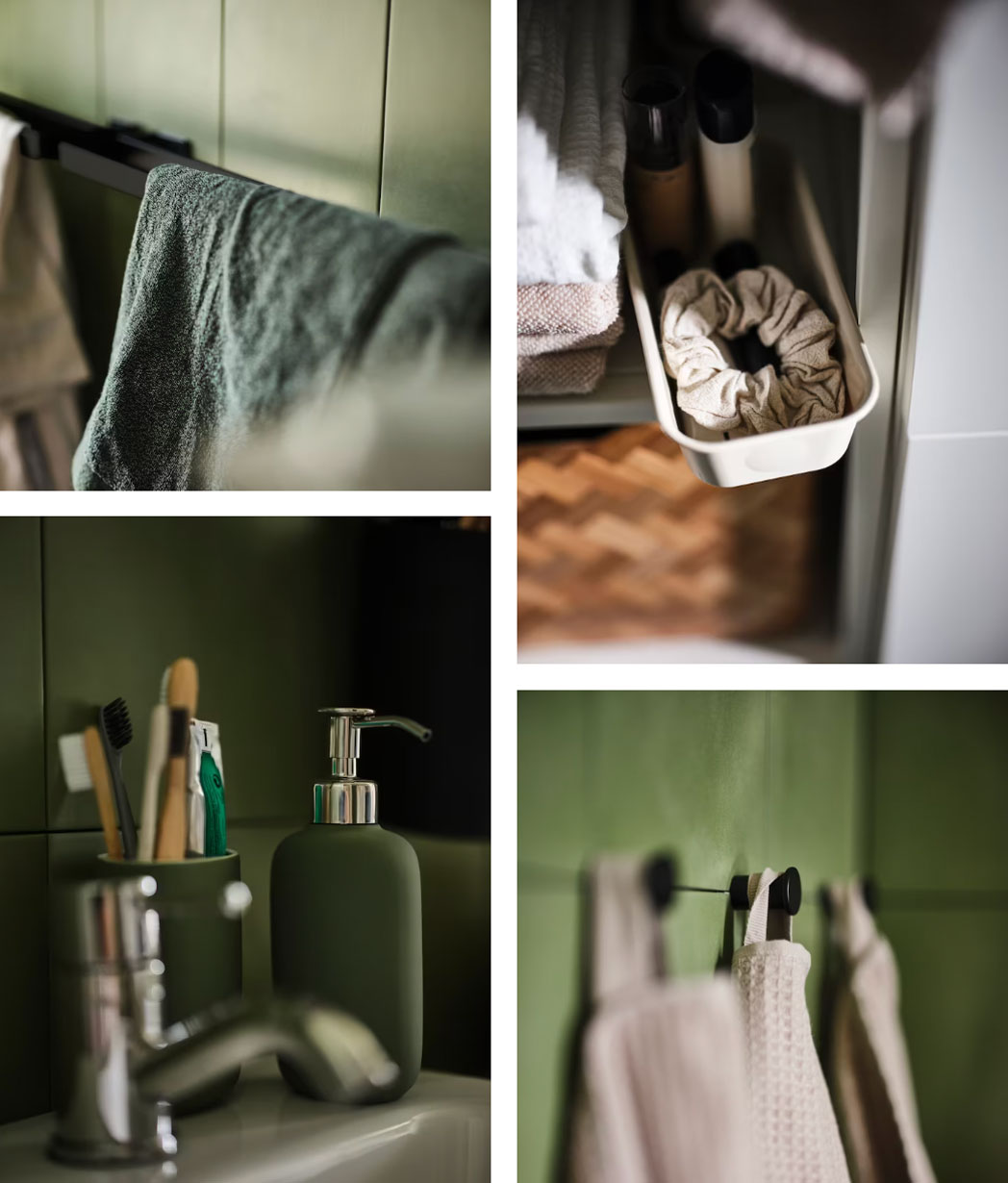 一家人的興趣眾多,從空手道課到攀岩,每日行程滿滿,這時很可能讓全家共用的浴室一片混亂。安排好淋浴的順序和時間,能提高效率;搭配大量層架、抽屜、掛鉤和掛桿,讓空間井然有序。