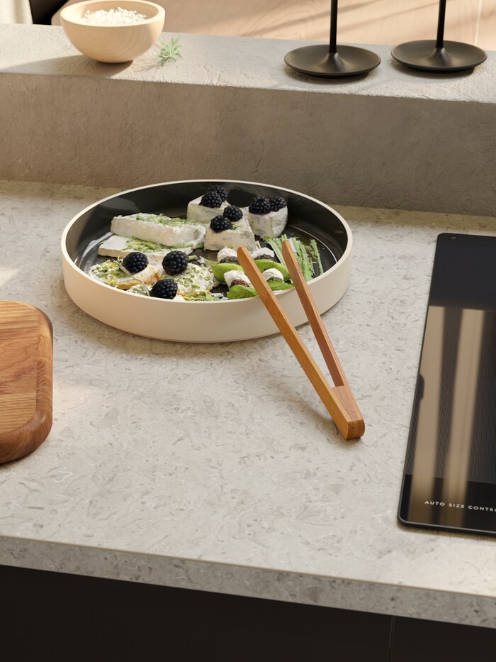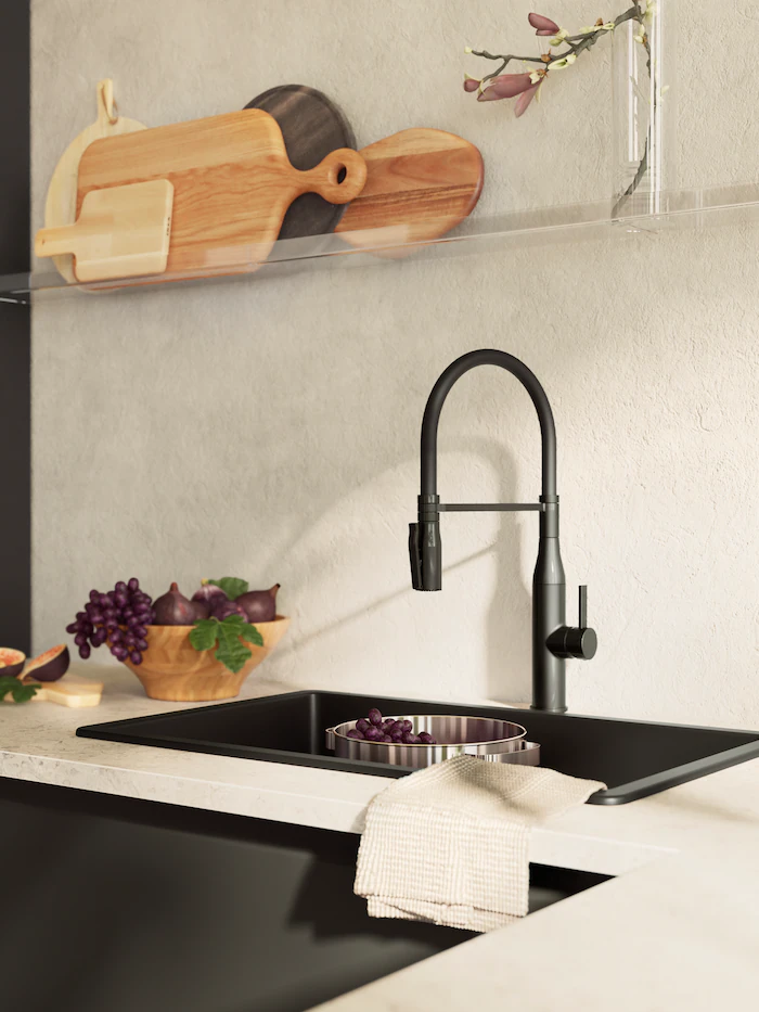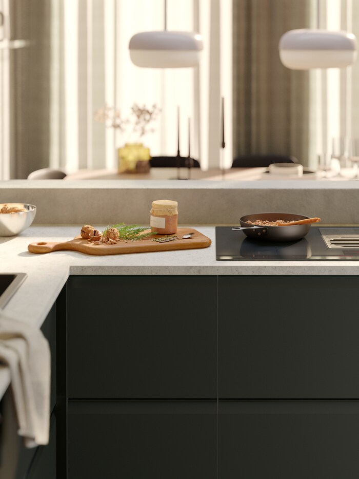 我們為這個中型家居設計充滿活力的現代廚房,不僅擁有整齊收納和實用功能,同時保持簡潔優雅的風格。簡約現代線條搭配深黑色和柔和色調,散發溫暖和諧的感覺。烹飪區靠近用餐區,方便與家人聊天,同時又能保持各自的私人空間。