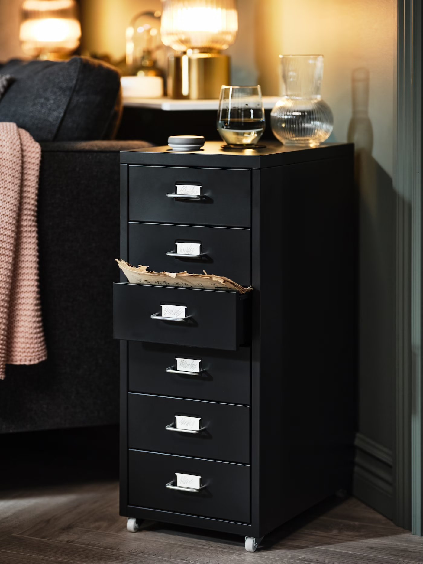 「這些都是重要文件。」幾乎所有人的家裡都有一大堆需要整理的文件。HELMER系列小型抽屜櫃,能讓收納煩腦迎刃而解。每個抽屜裡都有放標籤的位置,分門別類能迅速找到所需物品。附輪腳的設計,能隨意移動到家裡不同角落。