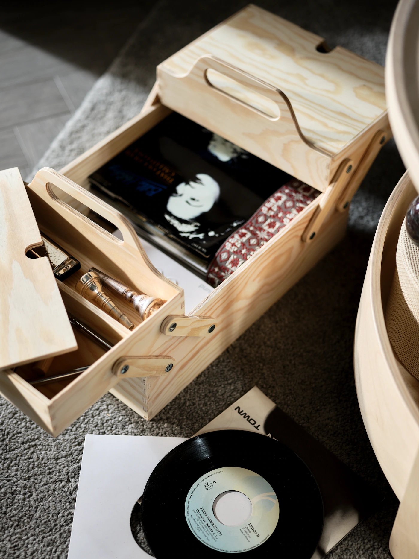 想要為眾多收藏品找一個家?KLÄMMEMACKA文具收納盒裡有不同大小的隔間,很適合用作音樂工具箱,妥善存放不同樂器配件。當琴弦斷掉時,立刻就能派上用場。