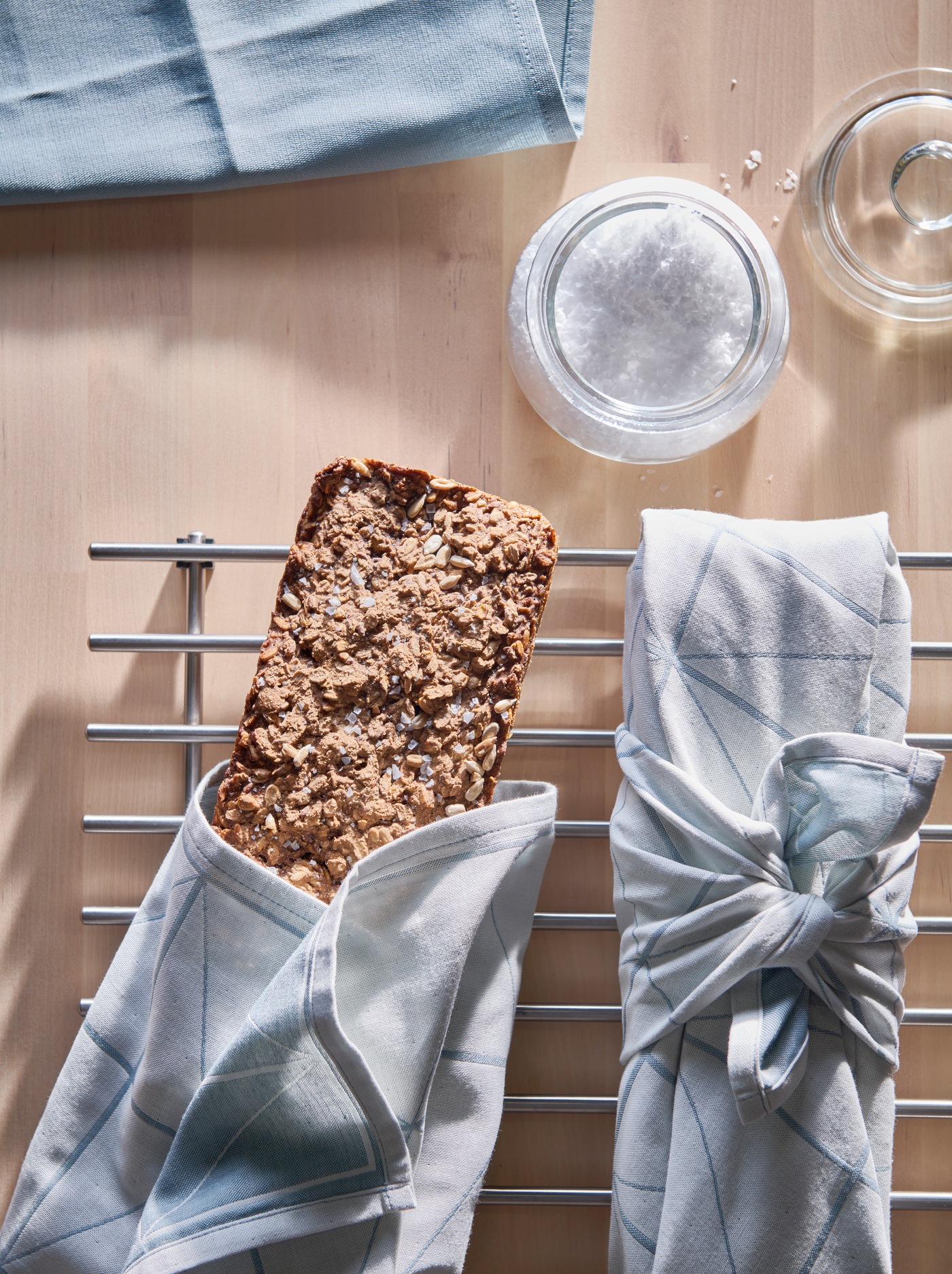 新鮮麵包需要好好包裝,才能保持美味。用擦巾細心包裹,不但好看,也能讓麵包繼續呼吸,釋放多餘的溼氣,為禮物大加分。
