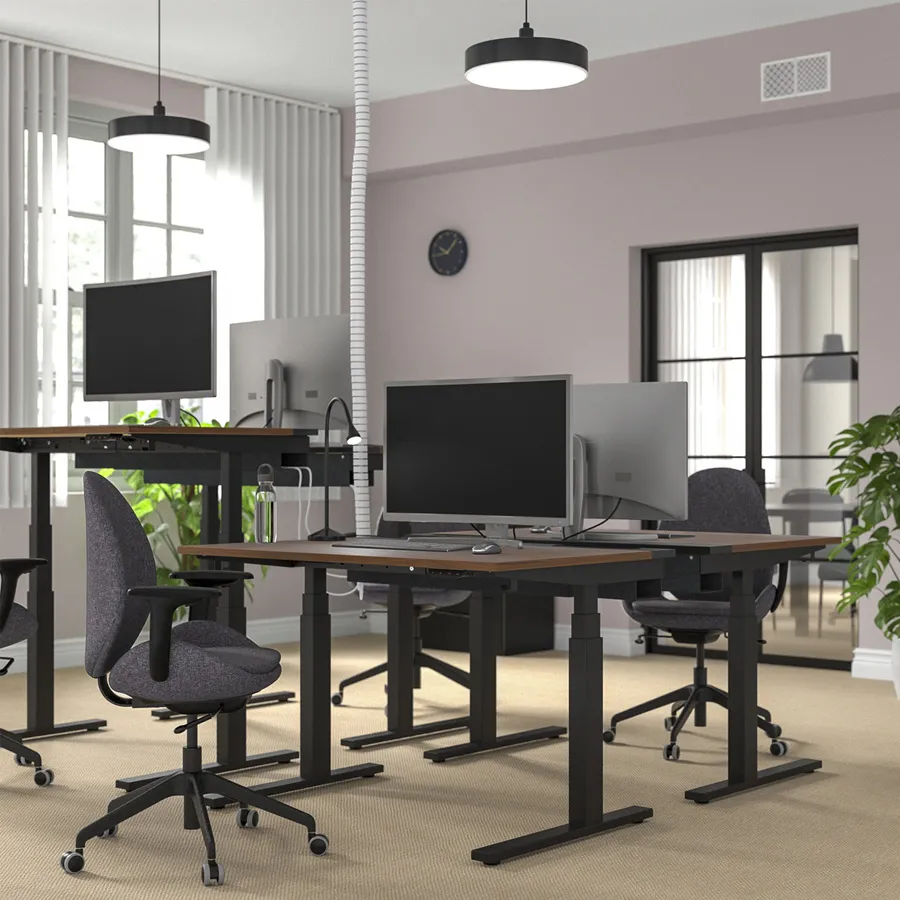 升降式工作桌, 電動 實木貼皮, 胡桃木/黑色, 120x80 公分