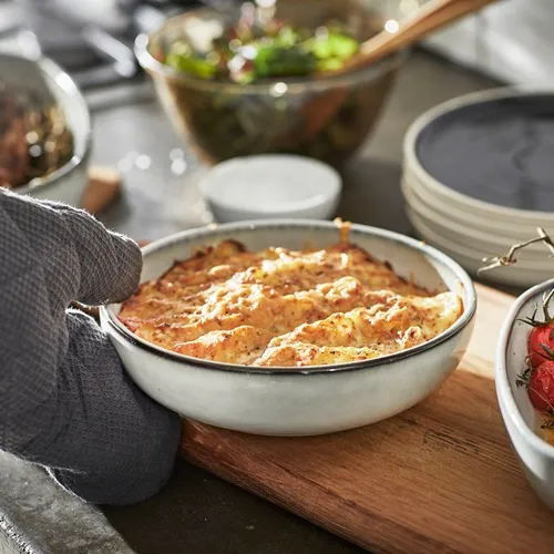 烤盤的多用性不僅在烘焙使用,更多時候在焗烤或加熱時使用,IKEA現有多款烤盤可供選擇,包含玻璃材質、不鏽鋼材質以及長白瓷,適用在烤箱、電磁爐、蒸氣烤箱等電器。