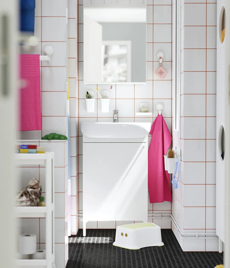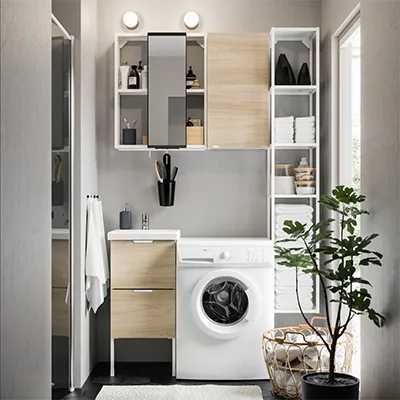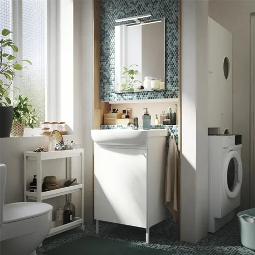 美好的一天,從梳洗開始,IKEA提供全套浴室配備,從水龍頭、浴櫃、鏡櫃及洗手台,讓你輕鬆將雜亂盥洗用品放進洗臉盆櫃與鏡櫃。