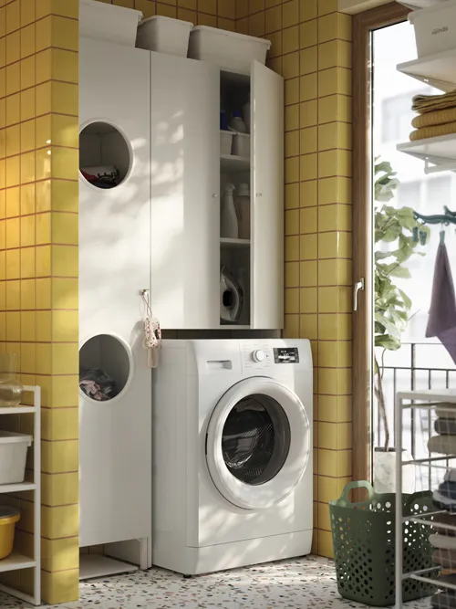 如果浴室空間有限,NYSJÖN 系列是最聰明的收納解方,幫助你輕鬆整理空間。輕巧的櫃體設計能完美契合浴室裡的狹小角落,提供充足置物空間,有效保持整潔。經過消光處理的白色櫃面,為浴室增添寧靜舒適氛圍。