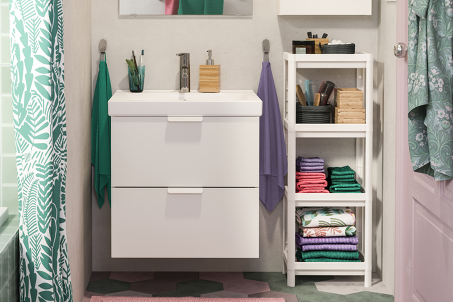 IVÖSJÖN系列為狹小的浴室提供清新的解決方案。 收納櫃能充分利用垂直空間來儲物,既具功能性又有典雅外觀。