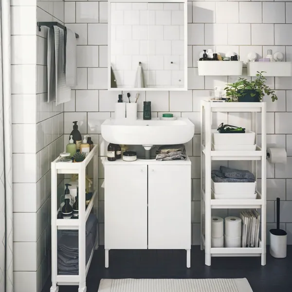 IVÖSJÖN系列為狹小的浴室提供清新的解決方案。 收納櫃能充分利用垂直空間來儲物,既具功能性又有典雅外觀。