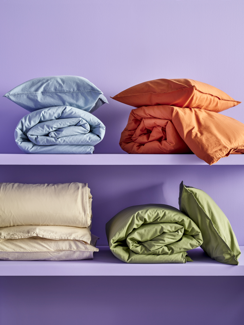 如果喜歡自然質樸的臥室色調,一定要看看新款 ÄNGSLILJA 被套。靈感來自大自然和季節變化,100% 純棉材質柔軟親膚,而且透氣舒適。選擇單一色調創造簡約風貌,或者混搭不同色彩創造充滿驚喜的寢具面貌。