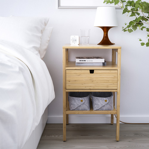 床邊桌讓你的鬧鐘、水跟看到一半的小說井井有條。IKEA提供各種不同風格與材質的設計,完美搭配你的既有家具,附有抽屜、層架和內建電線收納空間,讓你把生活小物通通藏起來,門一關就乾乾淨淨!