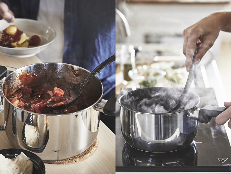 不論是熬湯還是煮麵,厚鍋底讓受熱更均勻、食物更美味;人體工學設計讓你單手也可以輕鬆使用,IKEA鍋具適用於全爐具,包含電磁爐、瓦斯爐、電陶爐、鑄鐵爐,不僅讓烹調效率大增,食物也更美味!