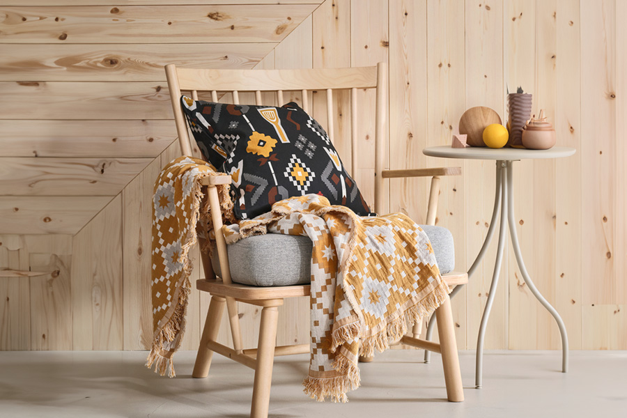 為居家風格升級的關鍵-織品,選擇亮色系美麗諾羊毛毯,再挑一張瑞典森林為靈感的手工地毯,最後點綴幾個圖騰靠枕,立刻讓你的客廳鮮活有型,與眾不同。