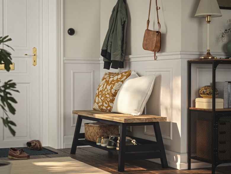提供舒適的座位,方便穿脫鞋子,下方適合存放鞋子和手袋等物品。