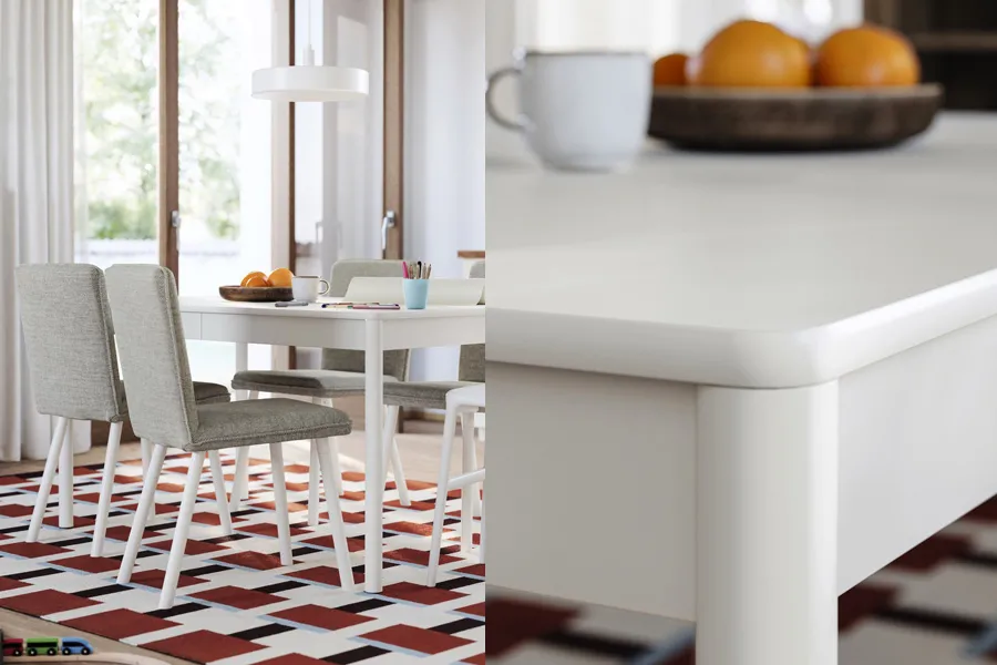 從頭到腳一身經典靜白的ROSENTORP餐桌,傳承著復古韻味,像一位資深管家日日以親切微笑陪伴生活點滴。全實木製作,加強表面防護處理,表裡一致的風範不僅好看,更加知人善任。