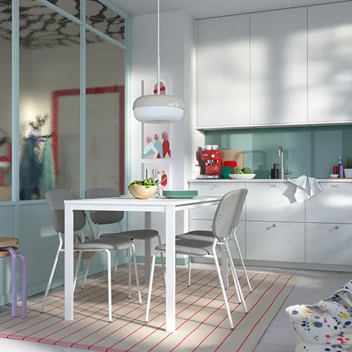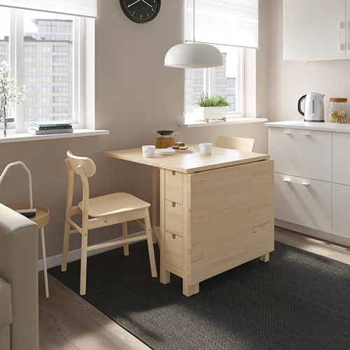 居家時光最頻繁且最精華的時段,幾乎都是在餐桌上度過。圍著餐桌,親朋好友聚在一起用餐、討論事情、做功課或談天說地,食物只是其中的一小部份。 IKEA有各種不同尺寸的餐桌,1到8人坐的餐桌都有。其中多款餐桌有外拉式、延伸式或折疊桌板,拉開就能讓桌面變大,以符合用餐的需求,且讓居家生活更有彈性。選擇不同的餐椅也能改變整個空間感受,還可以依個人喜好搭配。