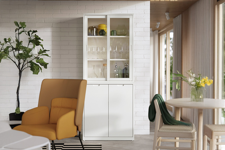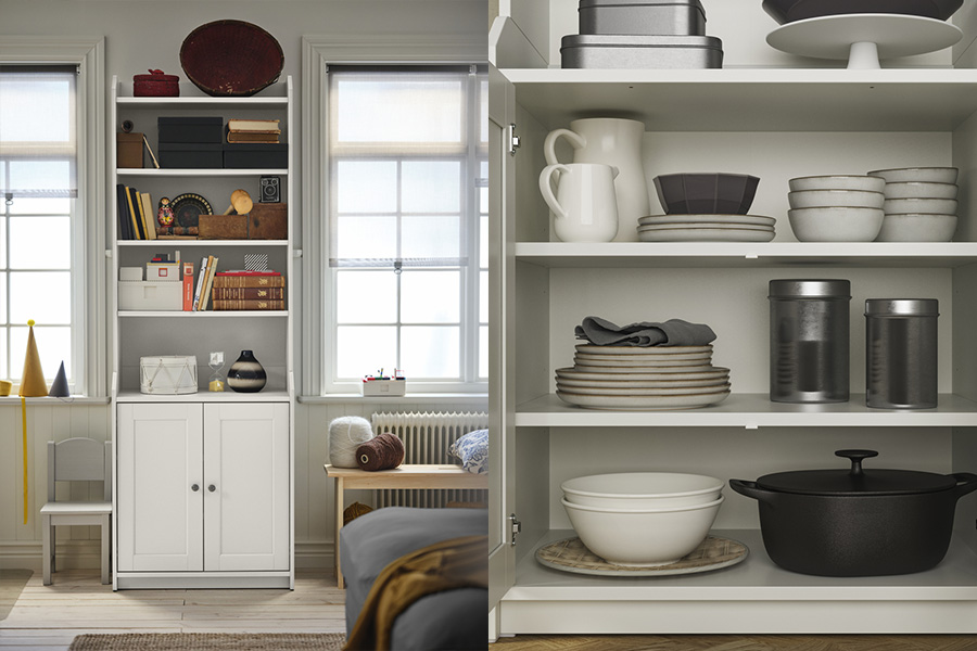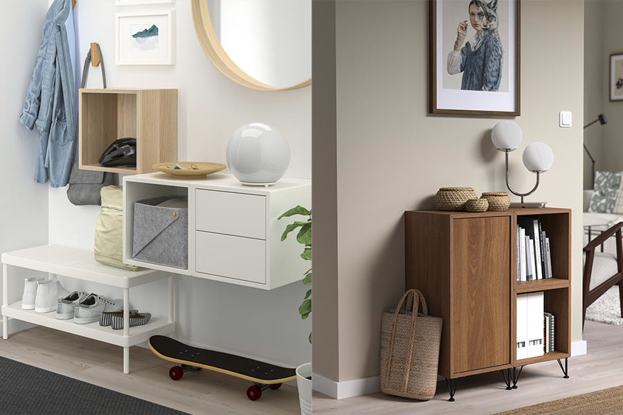 想要讓空間看起來更清爽有序?秘訣就是封閉式收納!在 EKET收納櫃上加裝門板,讓雜物在門後隱身/ 立刻把雜物都變不見,整個空間顯得更清爽整潔。試試混搭開放式收納櫃,同時兼顧展示和收納!
