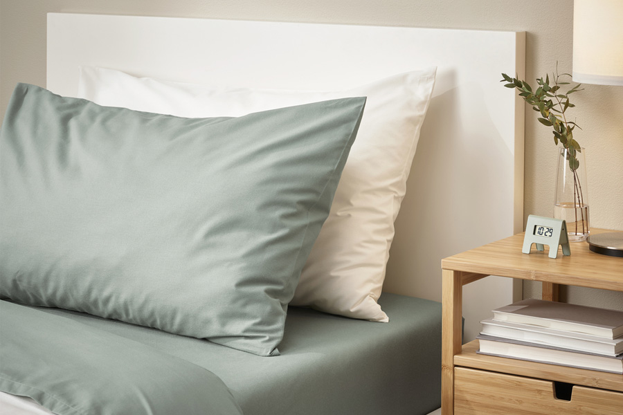 DVALA枕頭套以100%純棉製造,透氣吸濕,保持整夜恆溫。IKEA使用的所有棉花來自生產過程剩餘材料或以更少的水、肥料和殺蟲劑的方式種植,並確保棉花農種植棉花的收入增加。