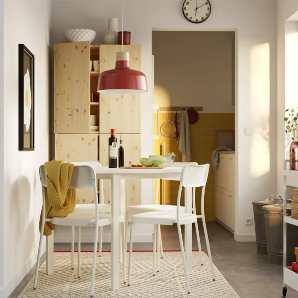 TONSTAD 系列融合經典設計與溫潤無光澤的乳白色細節,展現典雅實用的風格。可延伸餐桌最多可容納 6 人,不論日常用餐或親友聚會,都能靈活應對,打造兼具美感與實用性的用餐空間。