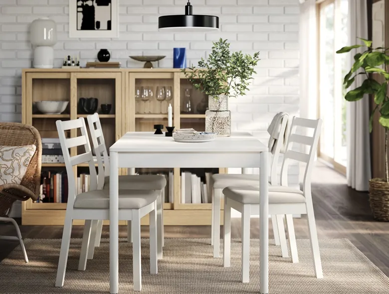 VIHALS 系列結合多元功能與耐用材質,給你高 CP 值的用餐空間選擇。無論是不同的桌型、尺寸,還是椅子的顏色搭配,都能輕鬆找到符合個人風格與空間需求的理想組合,讓飯廳更有生活感。