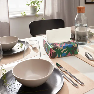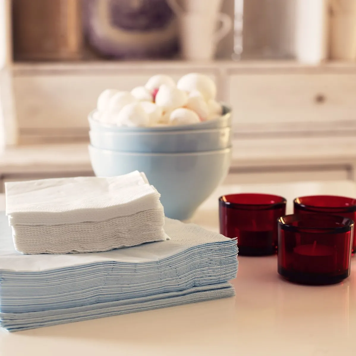 IKEA餐巾吸水力強,可輕易擦去污漬;除此之外他也是餐桌上最物美價廉的裝飾品。每年都會推出新的花色和餐巾樣式,搭配不同的餐巾架,讓餐桌變化繽紛多樣風格。