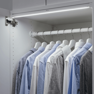 IKEA有著各式裝飾用或嵌入式櫃燈、感應燈條、燈條,兼具實用性及設計風格,安裝簡單,可安裝在抽屜、電視後方、收藏品旁或床底下,能讓你珍惜的收藏品在客廳、臥室大放異彩,在衣櫃、抽屜櫃或層架裡加裝燈具,尋找物品時更輕鬆方便,甚至還能透過燈光來為空間創造怡人氣氛。不管是廚房、浴室或其他空間,讓你盡情發揮想像力和創造力用不同方式使用燈具。