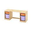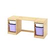 書桌附收納盒, 染白松木/白色 紫色, 124x44x53 公分