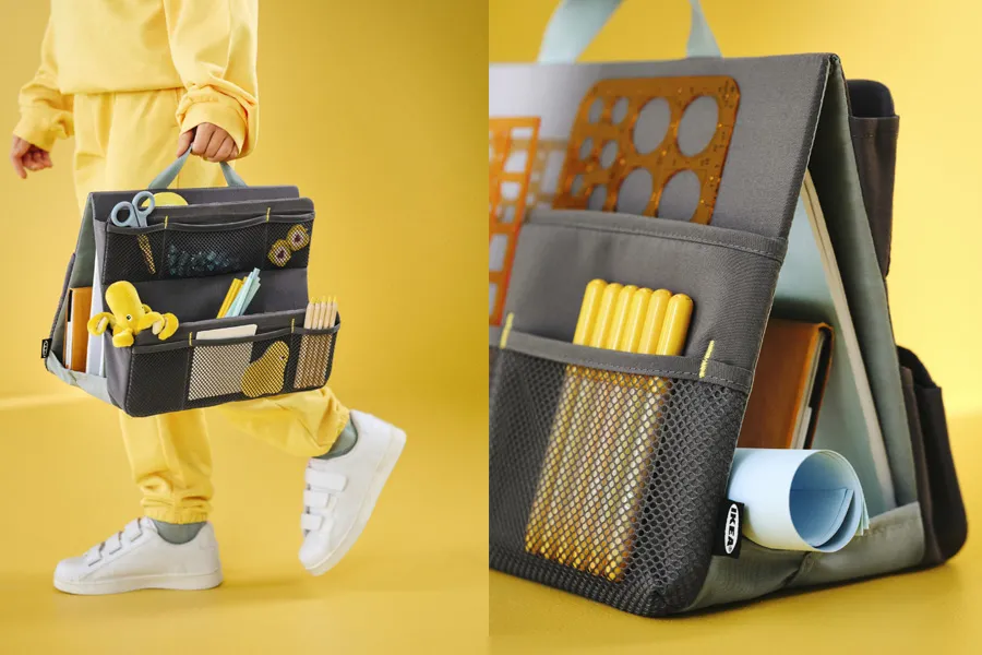 便攜學習小助手 ÖVNING文具收納袋方便攜帶,讓孩子(或你)輕鬆轉換工作或學習環境。它的超能力是使用多個口袋把文具、其他用品,甚至平板電腦整齊收好,方便取用。時尚的灰色漂亮悅目,完美配合家中佈置。