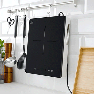 IKEA攜帶式電磁爐,附觸控式控制板,能輕鬆、精確的調整溫度,適合小廚房或你需要烹調食物的任何地方,尤其是外宿不能用明火的空間,想要煮火鍋或是進行簡單烹飪,出外人必備一台。IKEA提供電磁爐兩年保固,安心使用。