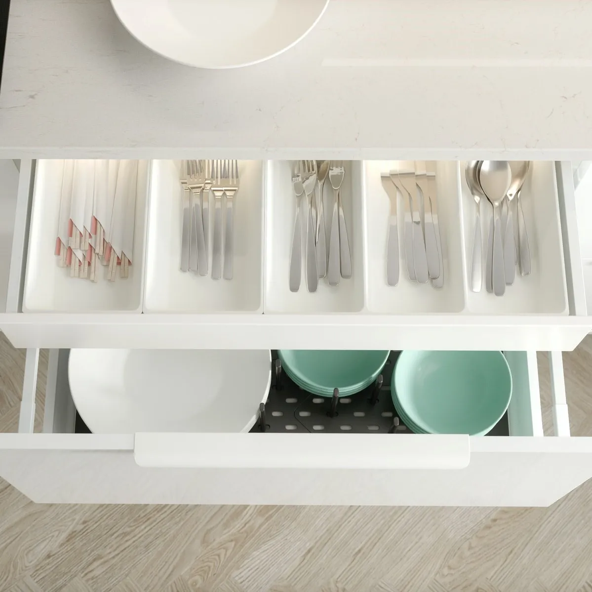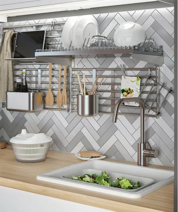 材料整齊放好,入廚自然更快更方便。我們的食品儲物,讓廚房食品全部一目了然。例如選擇所需的牆面層架組合,善用空間,並使用方便掛籃,收納細小物品。 IKEA提供收納3妙計: 1. 收納位置考量: 多利用牆面、廚房收納櫃內部空間來置放。 2. 善用垂直空間: 擺上層架、廚房推車可擴增垂直收納空間。 3. 清潔整理維護: 在料理後能夠輕鬆回復流理台原貌,常保乾淨。
