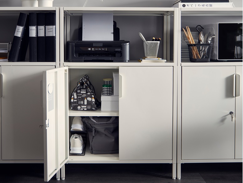 IKEA提供多功能收納櫃,就是為了貼近你的使用需求,讓工作更有效率。經測試,適合辦公室使用,並符合安全性、耐用度及穩定度的標準,讓你省下更多時間,專注在工作上。