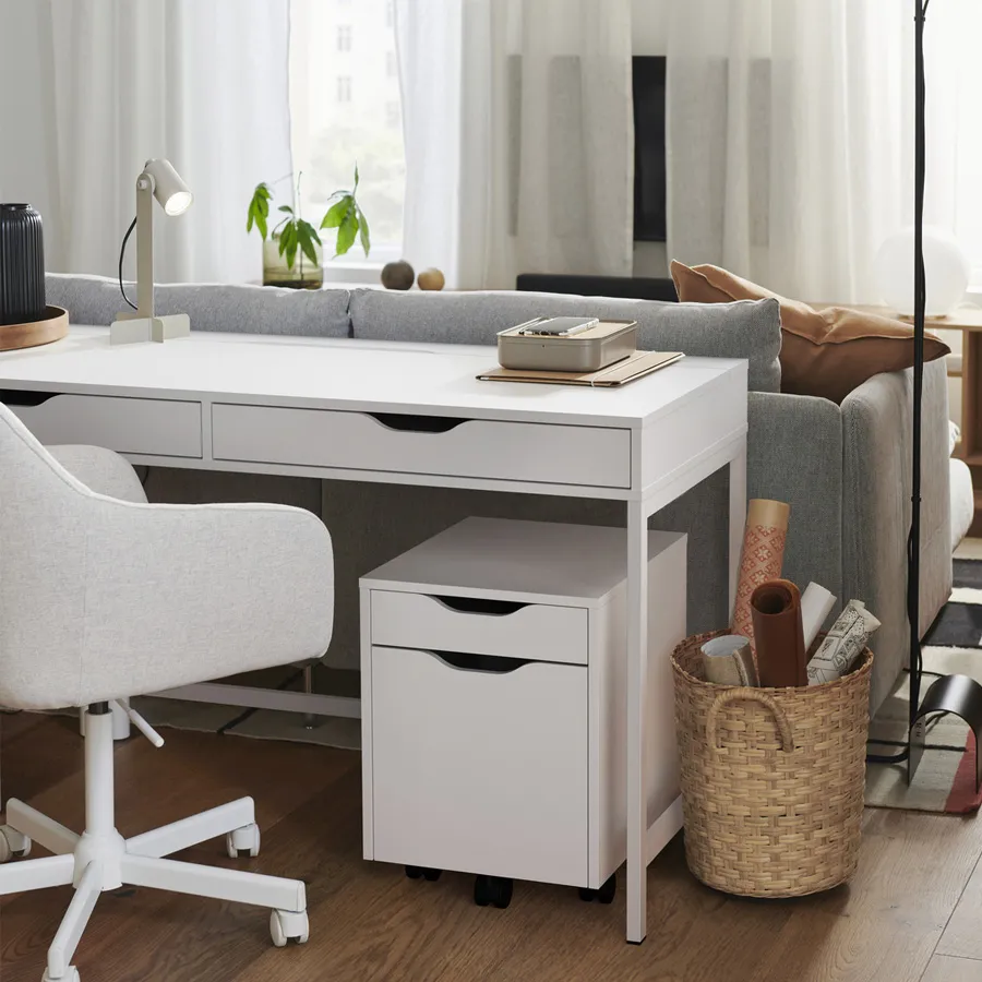 充裕的抽屜櫃組合提供聰明的儲物空間,可以放在書桌旁或單獨使用。簡潔的外觀讓人喜愛,還能與其他風格或 ALEX 系列的不同產品搭配。