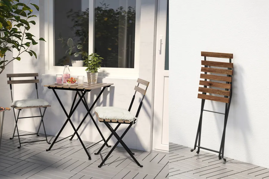 正在尋找適合一至兩人使用的小桌?可折起收納的DJUPÖN折疊桌,讓你盡情在陽台放空、用餐或晾曬衣物,打造溫馨舒適小陽台。