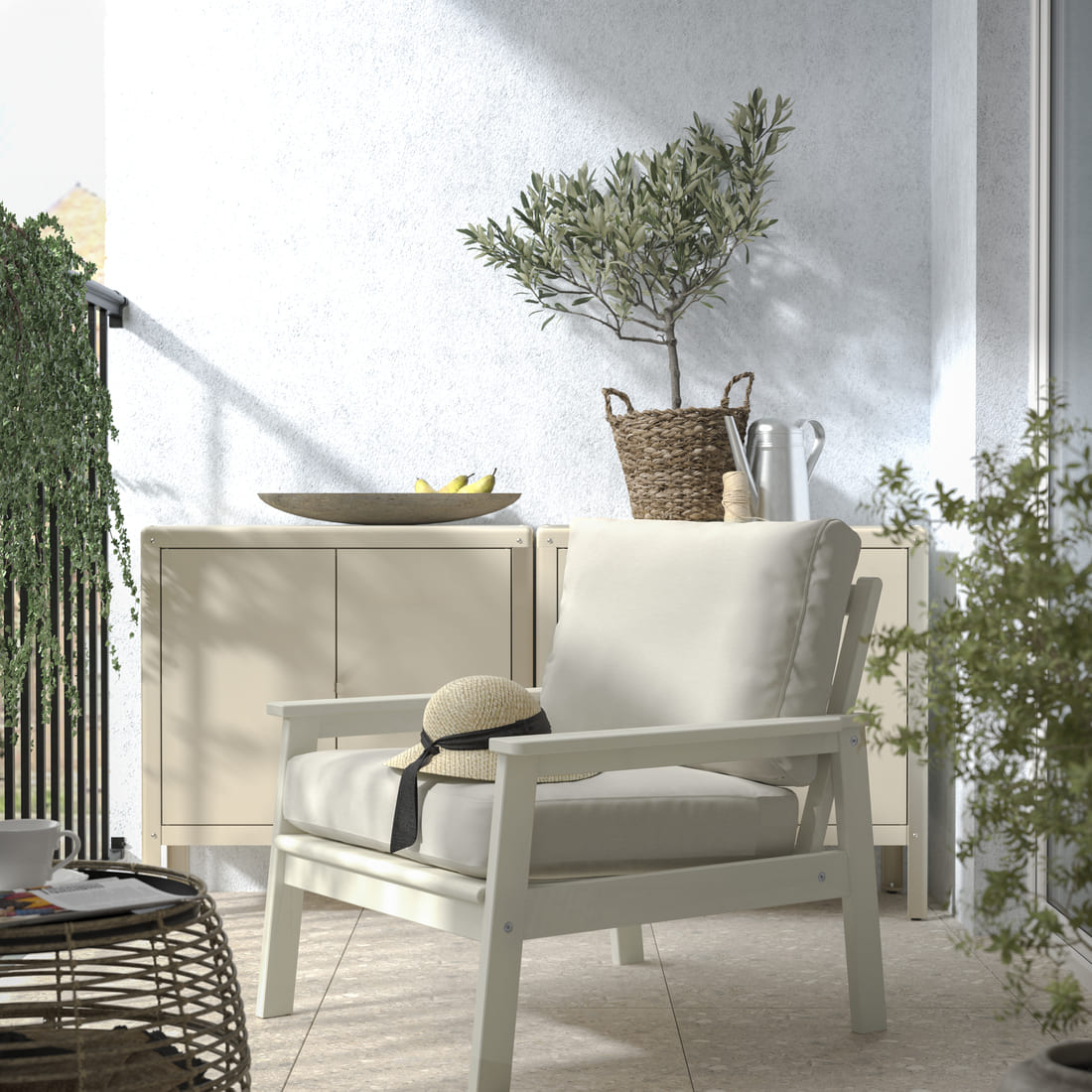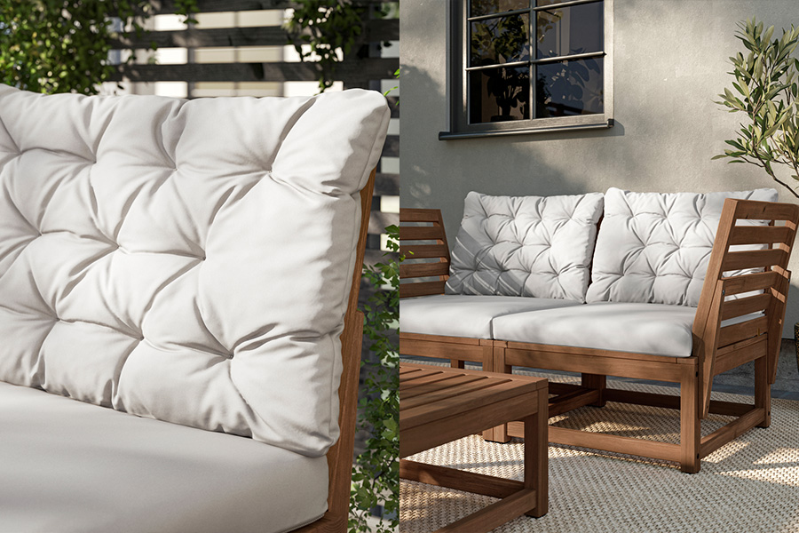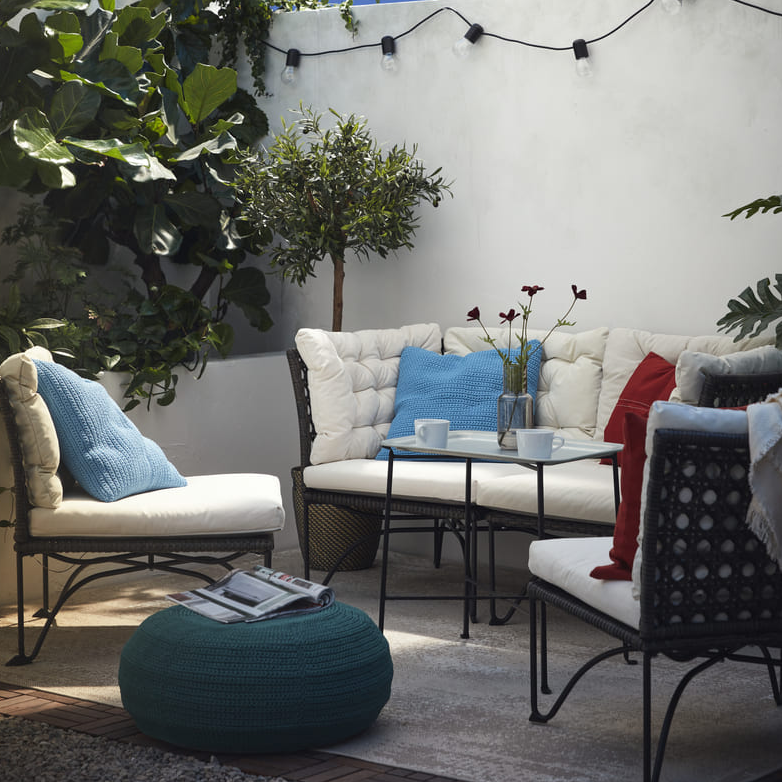 JUTHOLMEN系列以容易打理的膠籐製作,為戶外空間打造放鬆和舒適的空間。 柔軟的靠枕不但防褪色,且有防滑功能,讓生活變得輕鬆